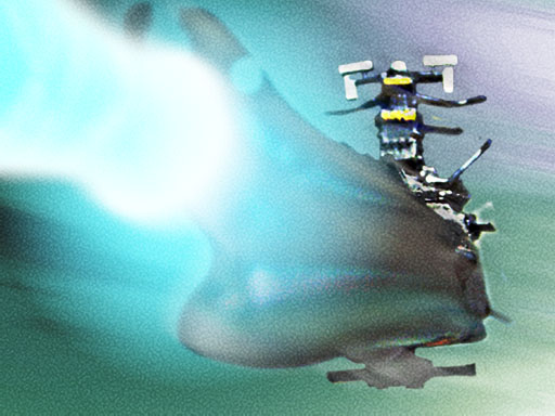 その言葉に、島は軽く舷側スラスターを噴射させて感触を見た。そして、振り返った。